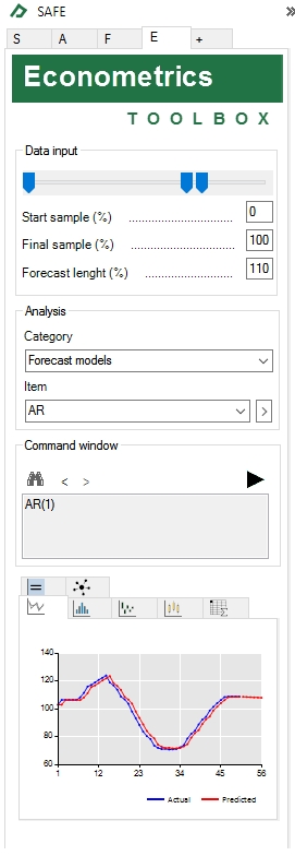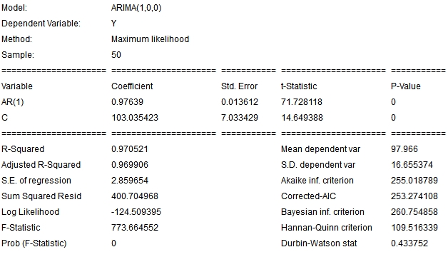 tab. This table shows the fitted parameters and useful statistics of our model. Not all forecasting models have a representation in the equation tab. This is the case, for instance, for the Holt-Winters models or the moving average model.